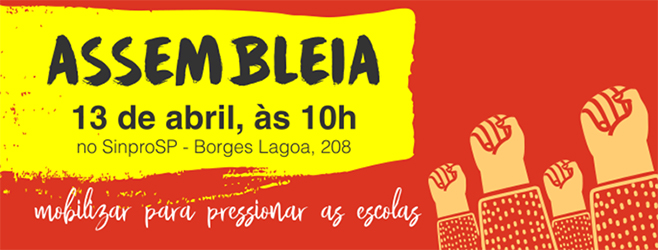 Mobilização e casa cheia Apenas a mobilização e a pressão da categoria serão capazes de forçar o sindicato patronal a negociar com seriedade e todas as iniciativas são importantes. O SinproSP tem intensificado o roteiro de visitas às escolas para falar com a categoria. Em cada local de trabalho, professoras e professores podem se organizar de acordo com a realidade de cada corpo docente. A assembleia do dia 13 deve avaliar o movimento e construir os próximo passos da luta. #TamoJunto