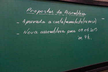 A assembleia aprovou manifesto a ser divulgado para toda sociedade nos próximos dias. O material será distribuído nas unidades para professores, pais e alunos e tem o objetivo de tornar públicas as difíceis condições de trabalho docente e o modelo pedagógico autoritário do Sesi.