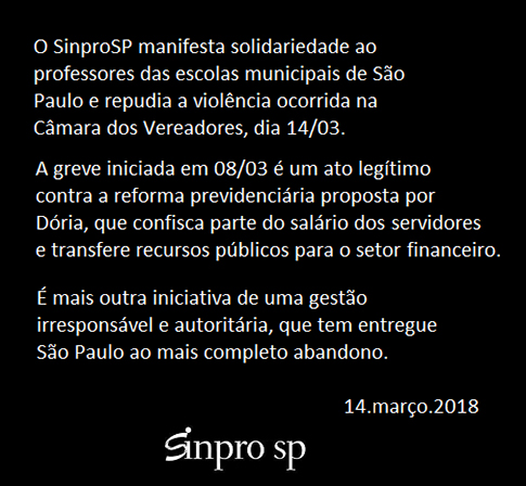 NOTA DE SOLIDARIEDADE AOS PROFESSORES DAS ESCOLAS MUNICIPAIS DE SP