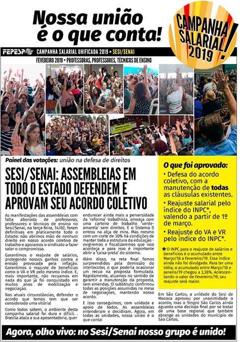 Boletim Campanha Salarial Unificada: professores do Sesi/Senai aprovam proposta